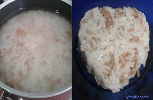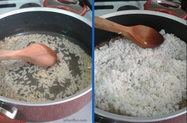 Sıvı yağda arpa şehriyeler kavrulur. Pirinç ilave edildikten sonra 2,5 su bardağı su ilave edilir. Önce hızlı ateşe pişirin ve göz göz olmaya başladıktan snra kısık ateşte pişirmeye devam edin.