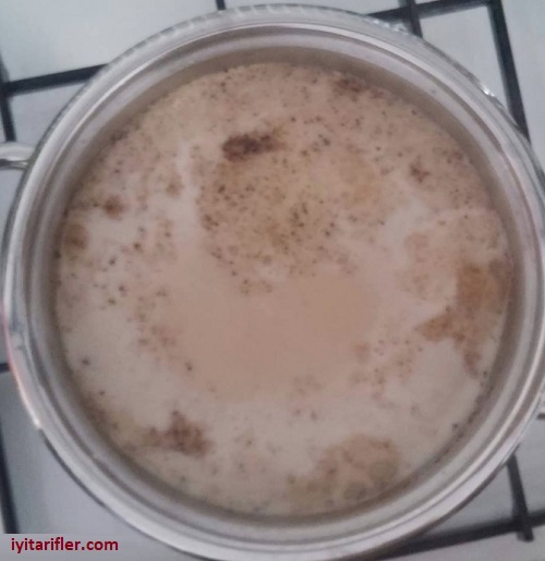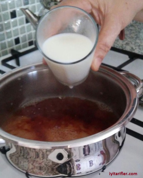 Çayın demini ilave edince zaman kaybetmeden bir buçuk bardak sütü tencereye ekleyeceğiz ve güzelce bir rengini almasını sağlayacağız.