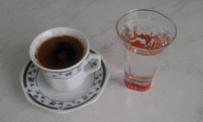 1)iki şeker kaşığı taze kavrulmuş Türk kahvesi